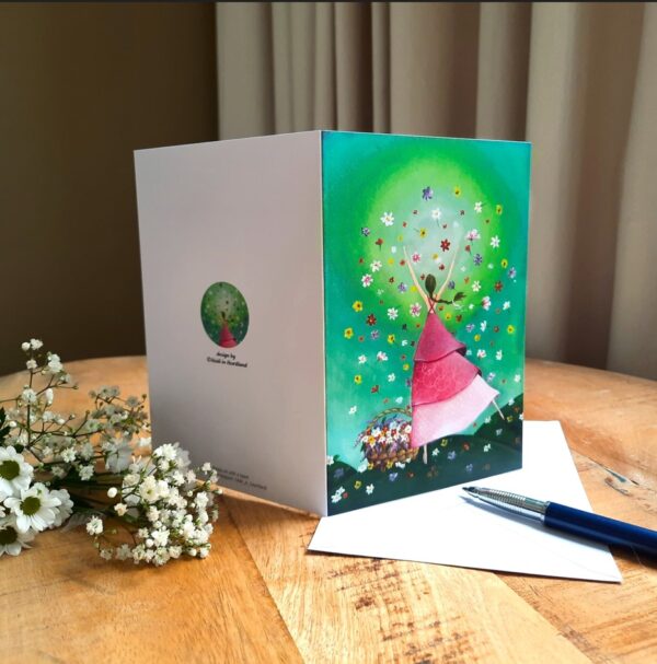 Een handgeschilderde dubbele wenskaart van Heidi in Heartland